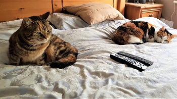 cats, rescued as kittens from Manchester in 2013: Copa is tortoiseshell and